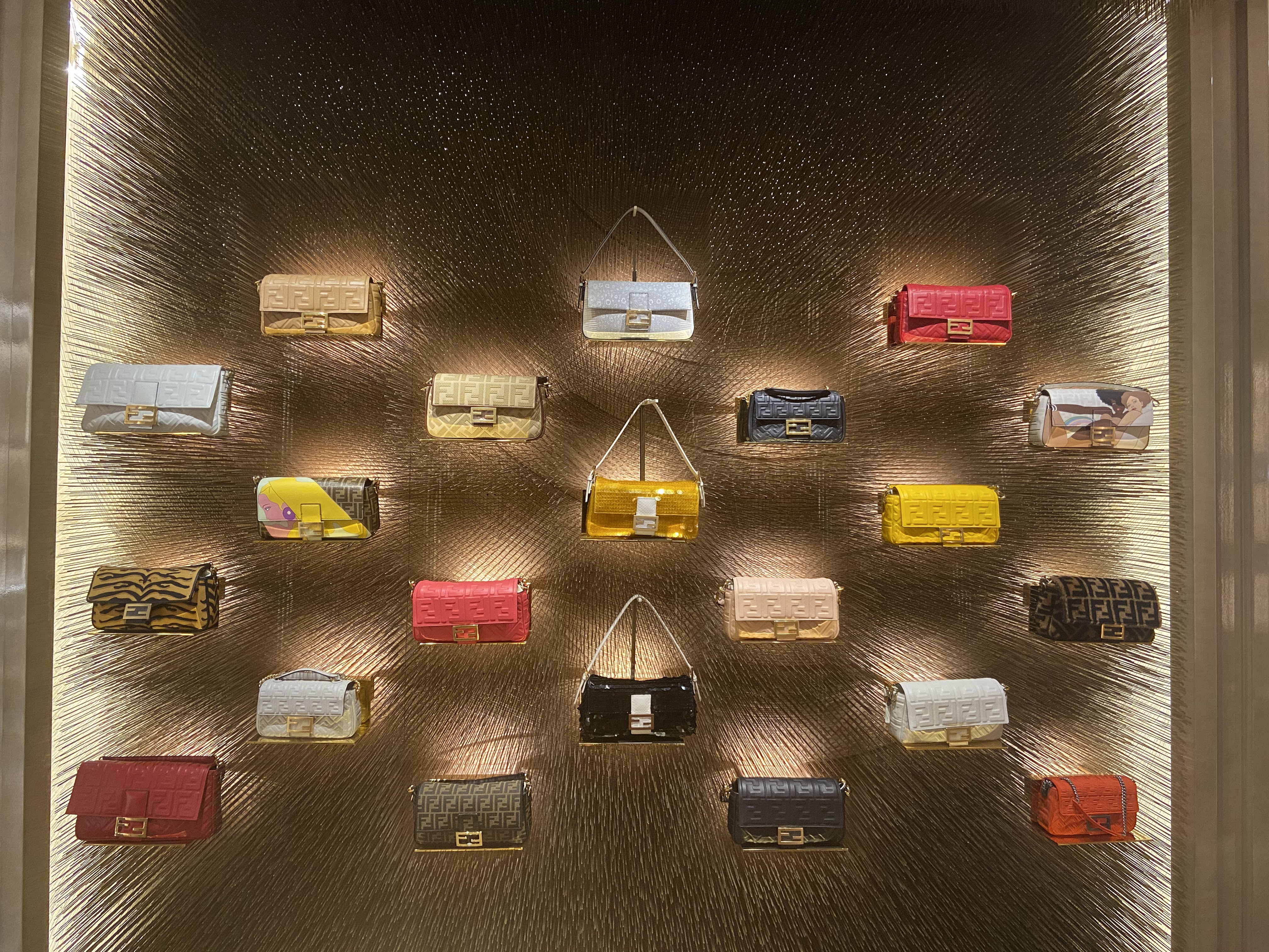Superbe présentoir honorant le 25ème anniversaire du sac baguette. Les vendeurs étaient très gentils et serviables et j’ai sincèrement apprécié mon séjour ici. Probablement ma meilleure et la plus unique expérience dans une boutique Fendi à ce jour.