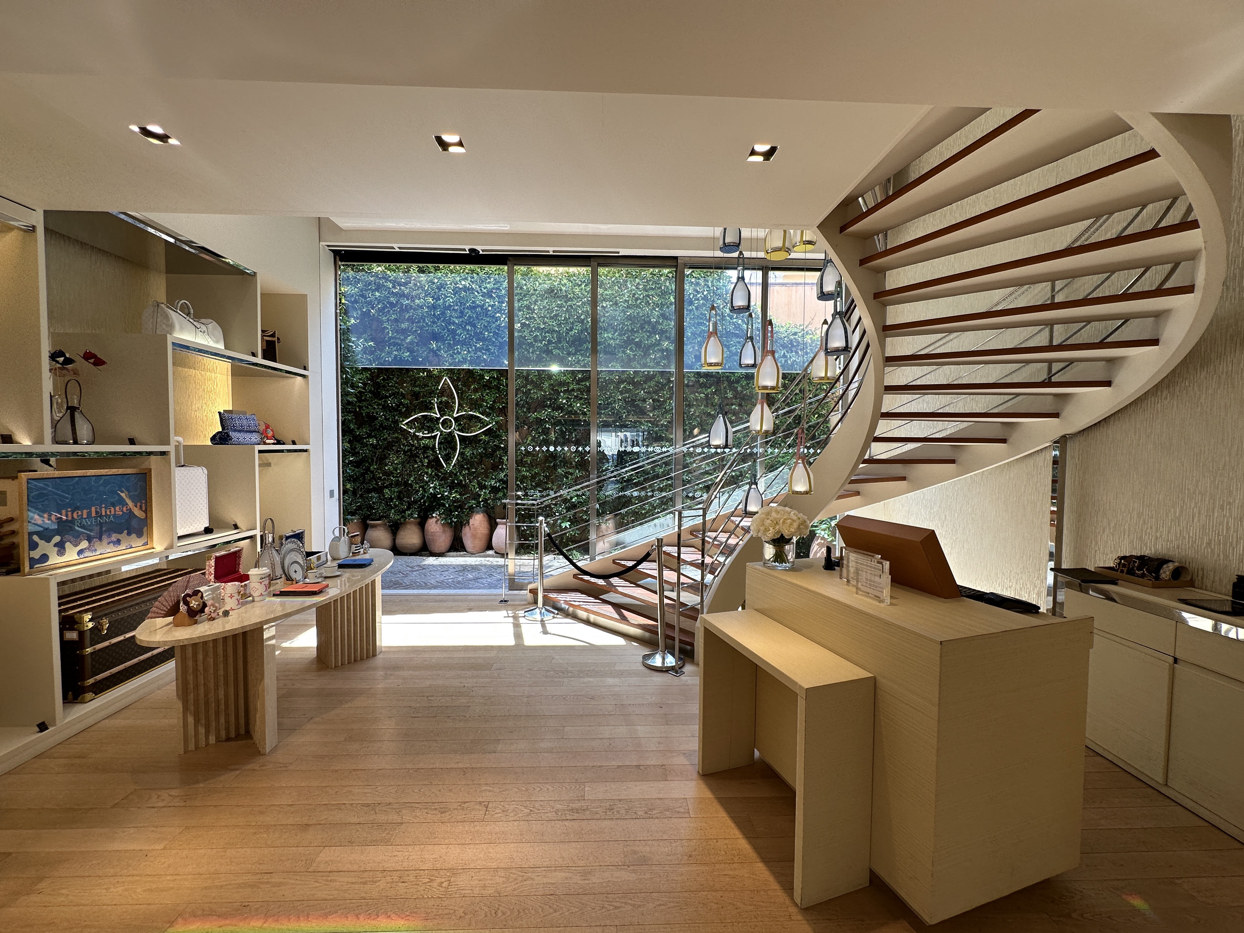Un personnel très amical et serviable. Vous savez du LV mais ici c'est extraordinaire ! Un jardin fantastique vous invite à vous attarder pendant et/ou après le shopping avec une coupe de champagne
