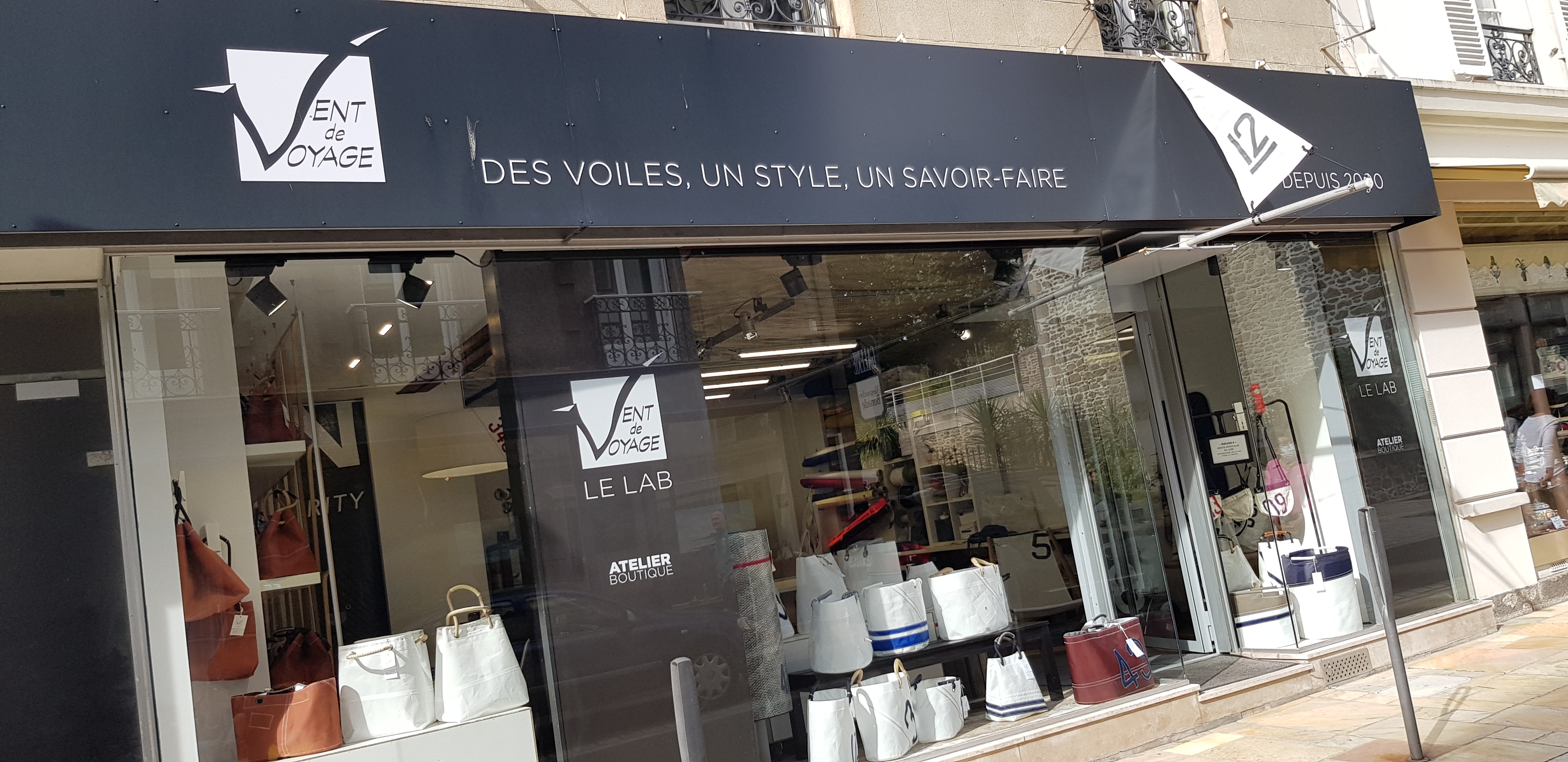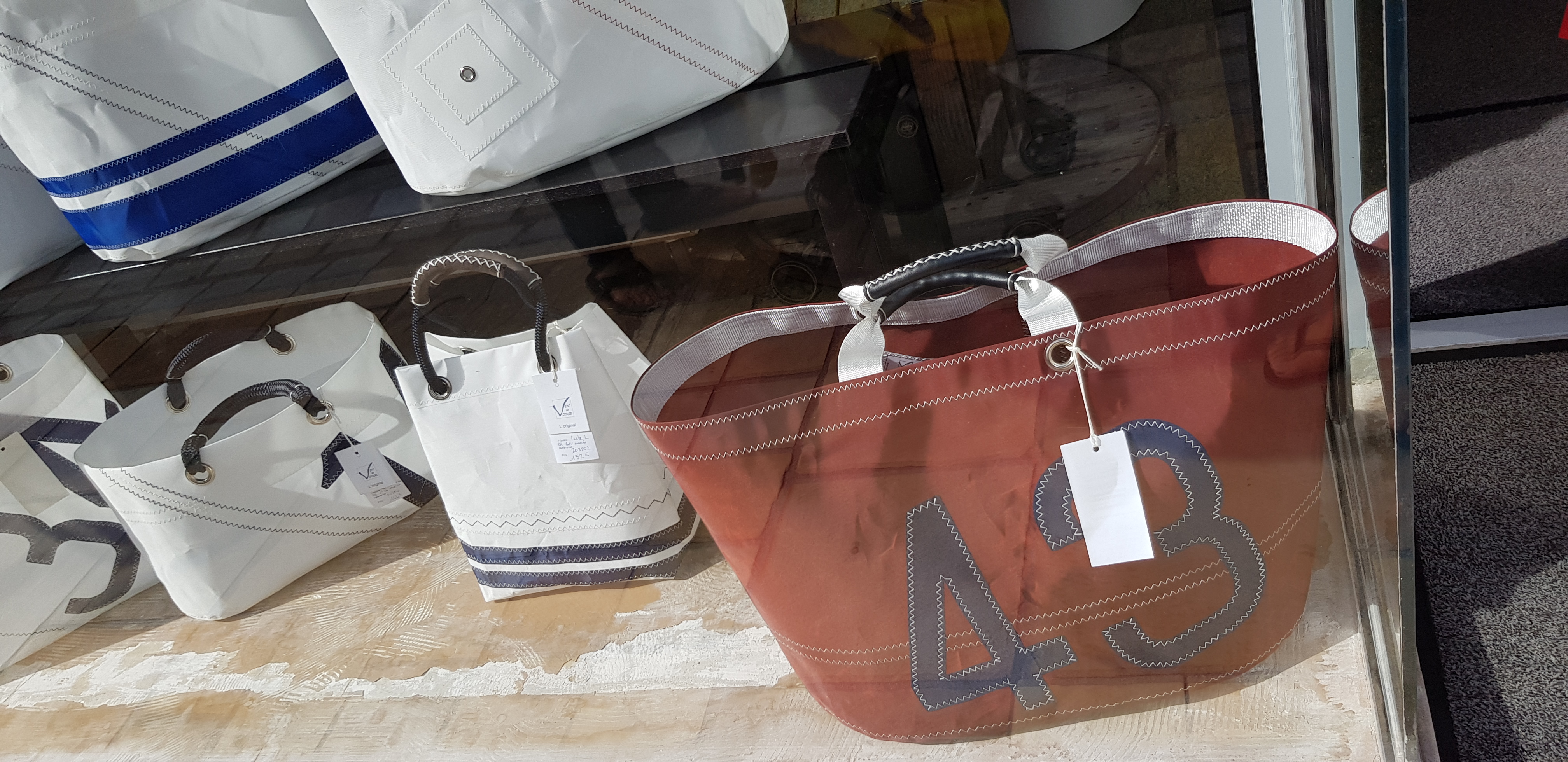 Superbe boutique d'une créatrice de sac et objets fait en voile de bateau.